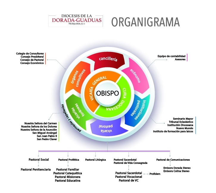 Conoce la estructura jerárquica y funcional de la Diócesis de La Dorada-Guaduas a través de nuestro organigrama institucional. Descubre cómo trabajamos juntos para cumplir nuestra misión pastoral y fortalecer la fe en nuestra comunidad.